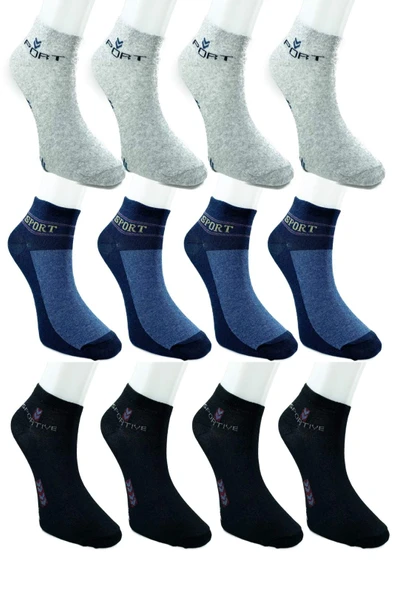 12 Çift Pamuklu Erkek Yazlık Spor Bilek Çorap Siyah Gri Lacivert