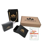 14 Ayar Altın Plakalı Burca Özel Hakiki Siyah Derili Ay Yıldız Motifli Hediye Bileklik-612