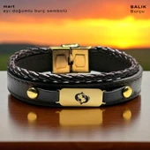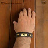 14 Ayar Altın Plakalı Burca Özel Koyu Kahverengi Derili Dikdörtgen Figürlü Hediye Bileklik-602