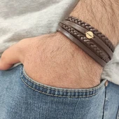 Ana Sayfa Takı & Gözlük & Saat Mücevher ve Değerli Taş Erkek Mücevher Altın Bileklik 14 Ayar Altın Plakalı İsme Özel Yuvarlak Motifli Hakiki Kahverengi Derili Hediye Bileklik-533