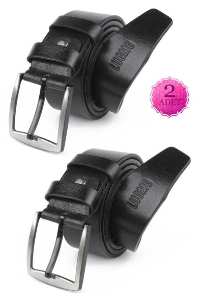 2 Adet Hakiki Deri Erkek Kemer Eko 4,5 cm Kot SiyahRenk