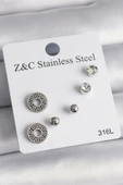 - 316L Çelik Gümüş Renk Zirkon Taşlı Labirent Model Kadın Küpe Seti