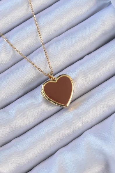 • 316L Çelik Zincir Altın Renk Mineli İçi Açılan Kalp Kolye - TJ-BKO9097