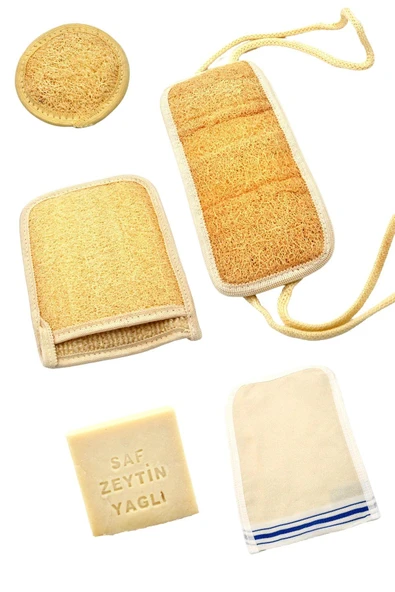 5'li Banyo Hamam Kese Seti Doğal Kabak Lifi Yüz + Vücud + Sırt + Sabun + Kese // Set7