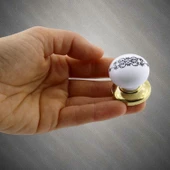 8 Adet Hanımeli Kulp Beyaz Polimer Düğme Kulp Altın Tablalı Mobilya Mutfak Dolabı Çekmece Kulbu Kulpları