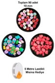 90 Adet 10 mm Polimer Kil Fimo Boncuk Takı Bileklik + 5 Metre Misina Hediye - Deniz - Kalp - Yuvarlak