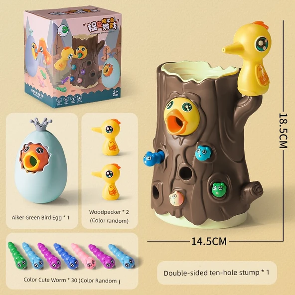 Ağaçkakan Bebek Besleme Oyunu - Büyük Direk + Yeşil Yumurta + 2 Ağaçkakan Çifti + 30 Sevimli Solucan Lüks Etkileşimli Versiyon