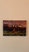 - Ahşap Köy Evi Ve Dağ Manzaralı Natürel Ahşap Çerçeve Ev İşyeri Ofis Duvar Kanvas Tablo MNZ13