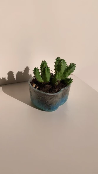 Altı Mavi Renk Üst Kısmı Gümüş Sim Süslemeli Kalp Şekilli Epoksi Sukulent Saksı El Yapımı HediyelikÜründe taksit avantajı var.