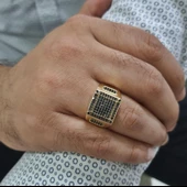 Ana Sayfa Takı & Gözlük & Saat Mücevher ve Değerli Taş Erkek Mücevher Altın Yüzük Altın Siyah Taş Detaylı Erkek Yüzük