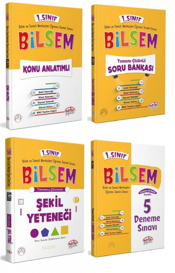 Editör Yayınevi 1. Sınıf Bilsem Konu Soru Şekil Deneme Set 4 Kitap 2023