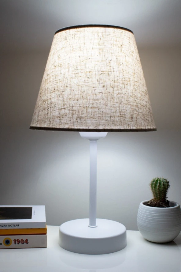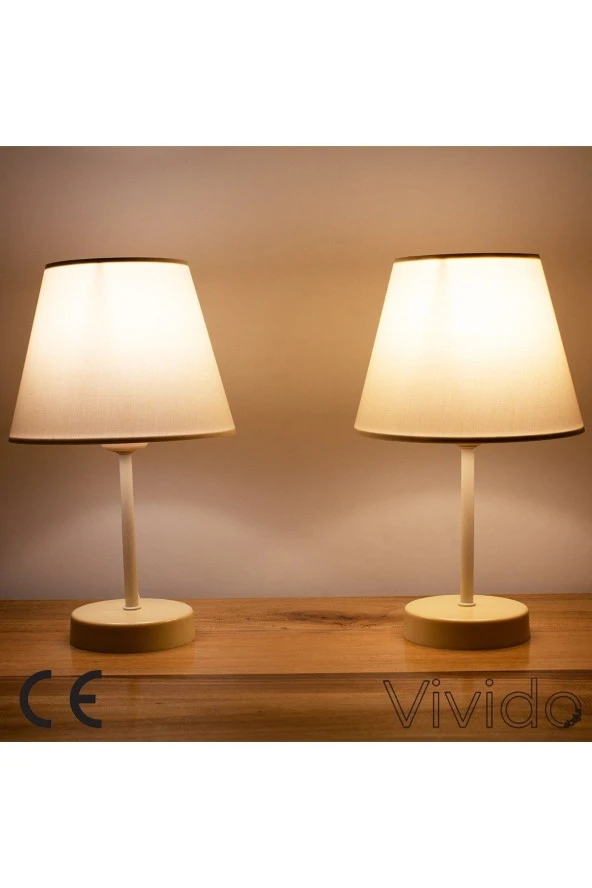Vivido Abajur Krem Modern Ikili Yatak Odası Abajur Beyaz Ayaklı Masa Lambası