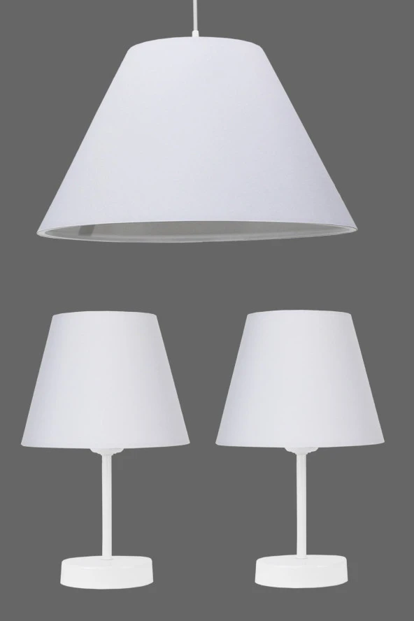Vivido Abajur Beyaz Üçlü Abajur Konik Avize Seti Yatak Odası Aydınlatma
