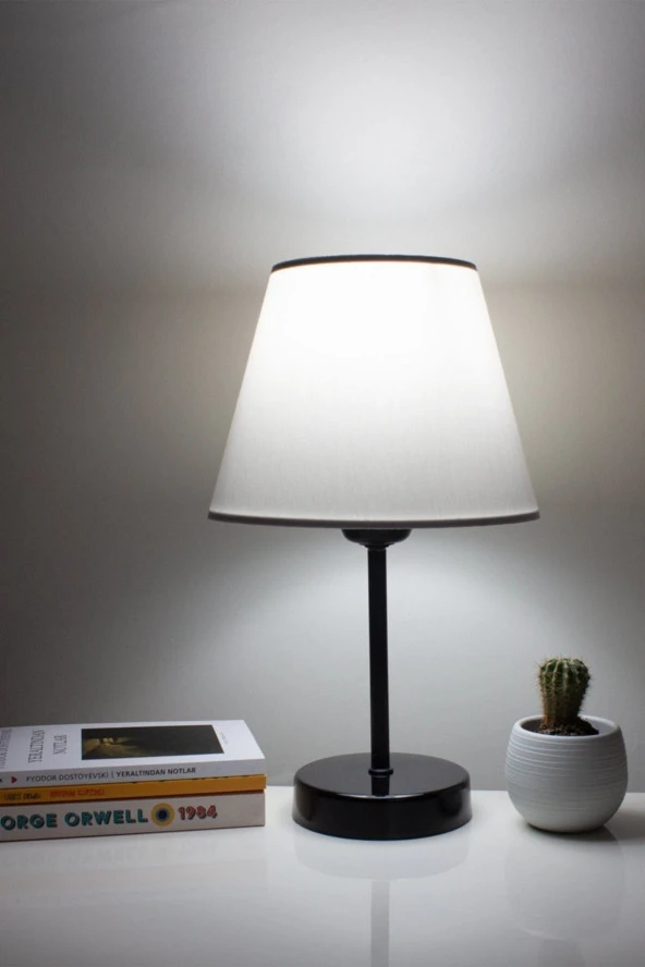 Vivido Abajur Beyaz Modern Yatak Odası Abajur Siyah Ayaklı Masa Lambası