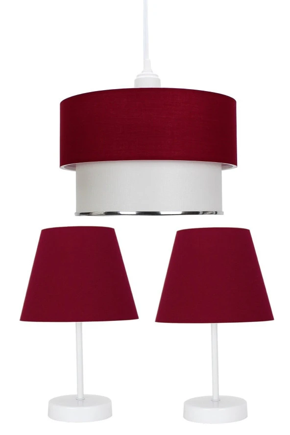Vivido Abajur Bordo Üçlü Abajur Ve Avize Seti Yatak Odası Aydınlatma