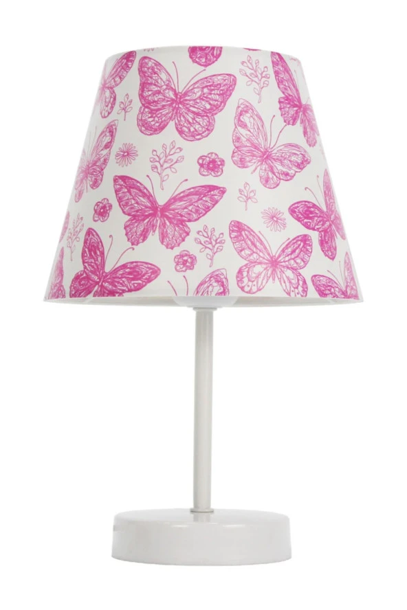 Vivido Abajur Pembe Kelebekli Kız Çocuk Odası Abajur Komodin Üzeri Aydınlatma