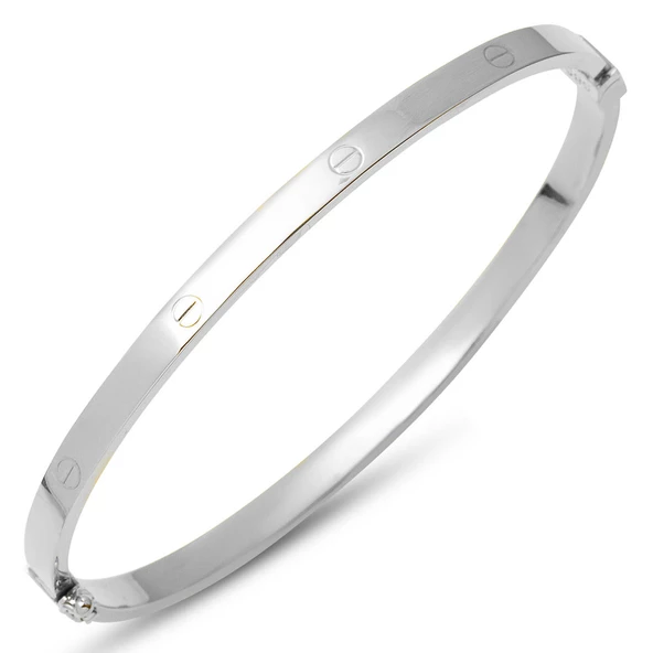 Vidalı Beyaz Kelepçe Altın Bilezik