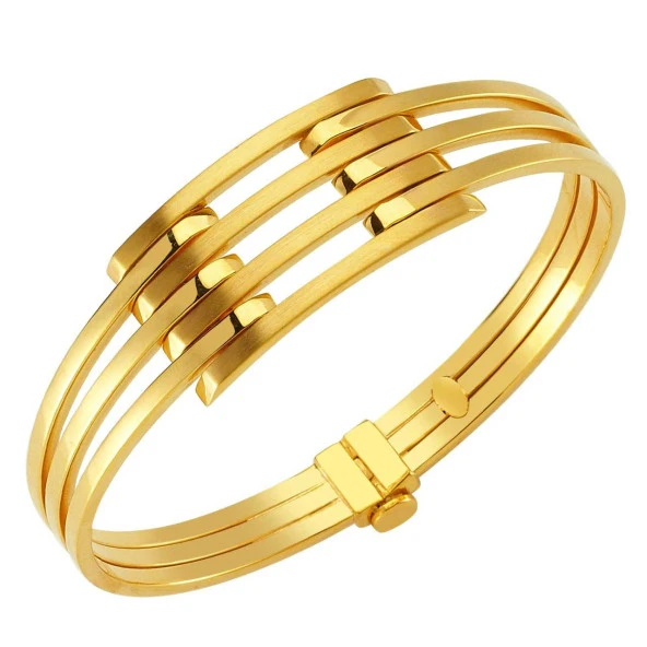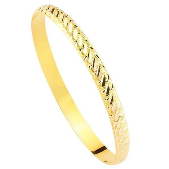 1. Bileklik Şeklinde Altın Bilezikler: Bu bilezikler dairesel ve serttir ve bileğe dayanmak için elin üzerinden kayar. Tek başlarına takılabilir veya cesur bir görünüm için diğer bileziklerle üst üste takılabilirler.