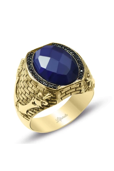 Safir Taşlı Erkek Şovalye Yüzüğü