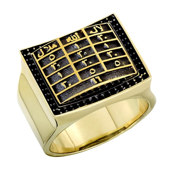 Erkek Kare Desenli Altın Yüzük
