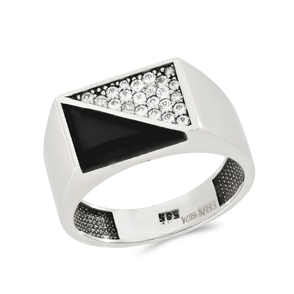 Erkek Kare Taşlı Çizgi Mineli Yüzük
