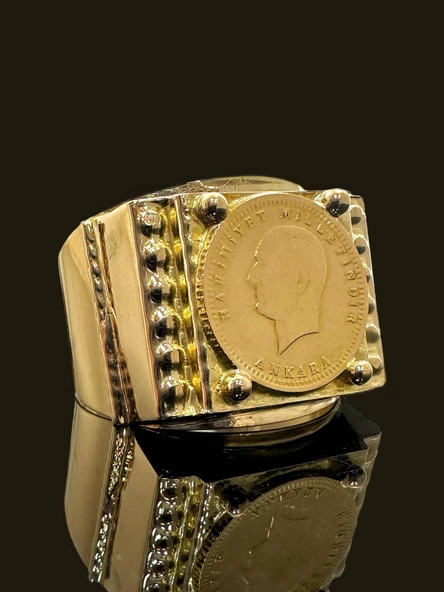 Şövalye Kasa 22 Ayar Reşat Tuğra Çeyrek Altınlı Altın Erkek Yüzük