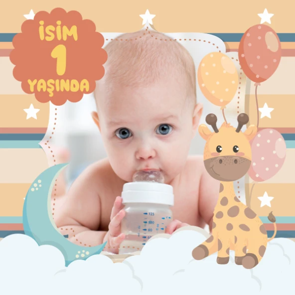 Kişiye Özel Resimli Doğum Günü Kumaş Afiş 150x150 cm