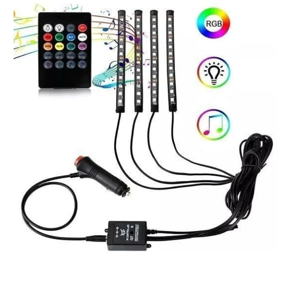 Araç İçi Ayak Altı Sese Duyarlı Şerit Led 4'lü Set