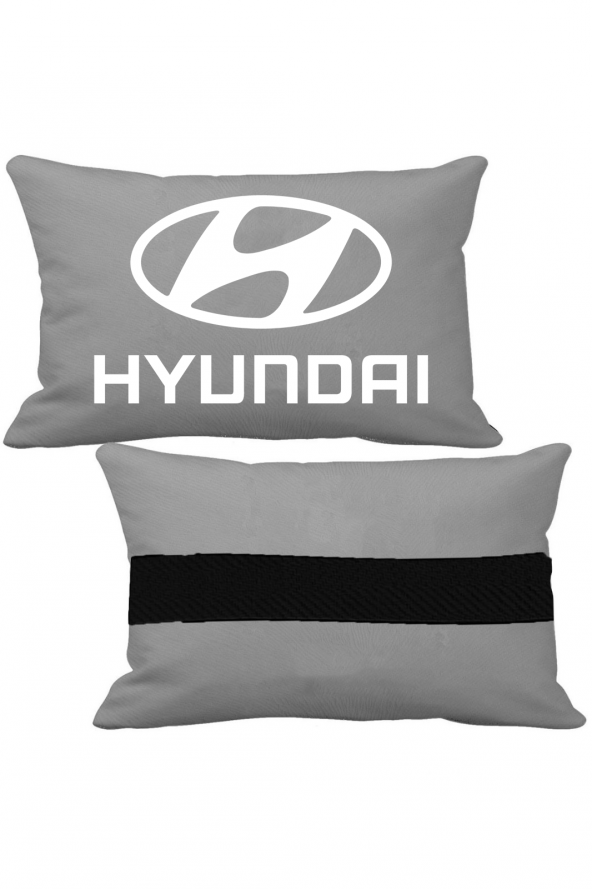 Öziron Hyundai Grandeur Oto Koltuk Boyun Yastığı 2 Adet Hyundai Amblem Logolu Gri Ortopedik Yastık