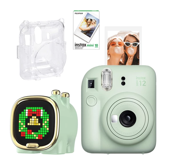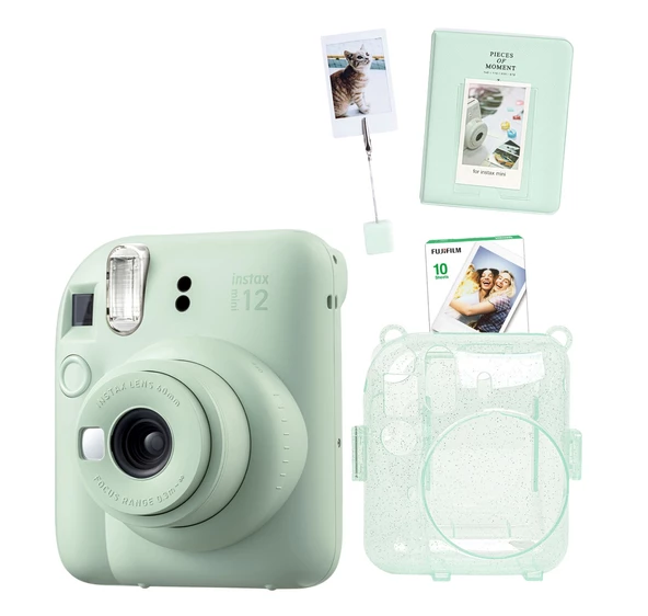 Fujifilm Instax Mini 12 10 Filmli Kıskaçlı Stand-PVC Albüm v Kılıflı Yeşil Fotoğraf Makinesi