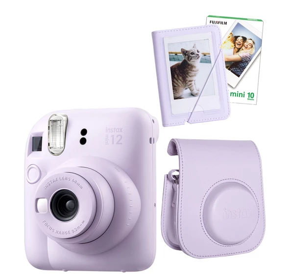 Fujifilm Instax Mini 12 Lila Fotoğraf Makinesi 10'lu Film Mini Albüm ve Deri Kılıf Seti