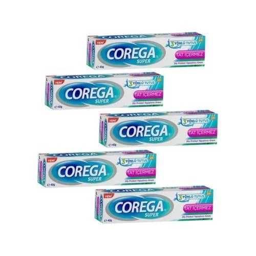 Corega Süper Diş Protezi Yapıştırıcı Tat İçermez Krem 40 gr 5 Kutu