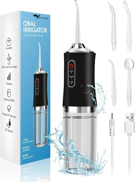 Valkyrie Şarj Edilebilir Diş Protez Bakım Ağız Duşu 4 Başlıklı Taşınabilir 1. Kalite Siyah