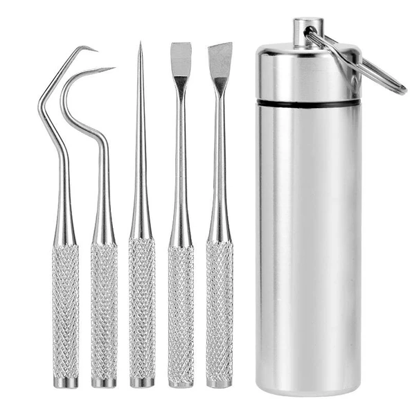 Valkyrie 6 adet Metal Kutulu Paslanmaz Çelik Diş Tartar Dil Temizleme Dental Ağız Bakım Seti