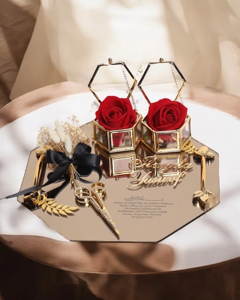 Cherish Gold Aynalı Nişan Tepsisi ve Söz Tepsisi Siyah