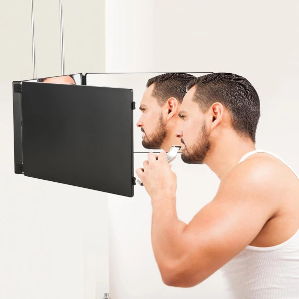 Valkyrie 360 Derece 3 Yön Kişisel Saç Sakal Kesimi Berber Aynası - Teleskopik Duvar Askısı - Katlanabilir Tasarım - Makyaj, Sakal Saç Tasarımı, Kişisel Bakım Aynası