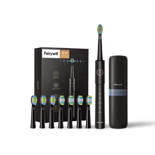 Fairywill E11 Sonic Şarj Edilebilir Diş Fırçası 5 Farklı Temizleme Modu + 8 Yedek Başlıklı Seyahat Kiti