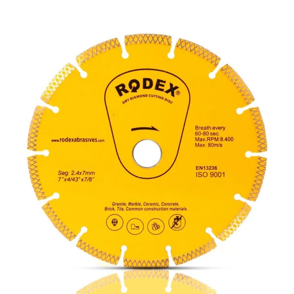 Rodex Elmas Kesme Kesici Diski Tuğla Granit Mermer 180 mm