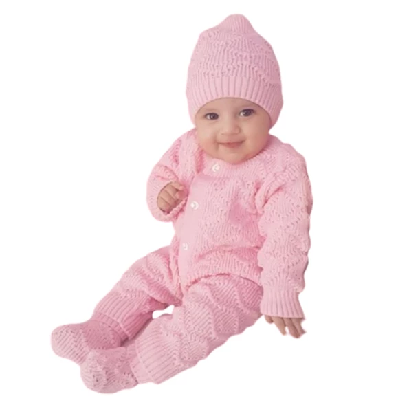 Pembe , Bereli Triko Kız Bebek Tulumu