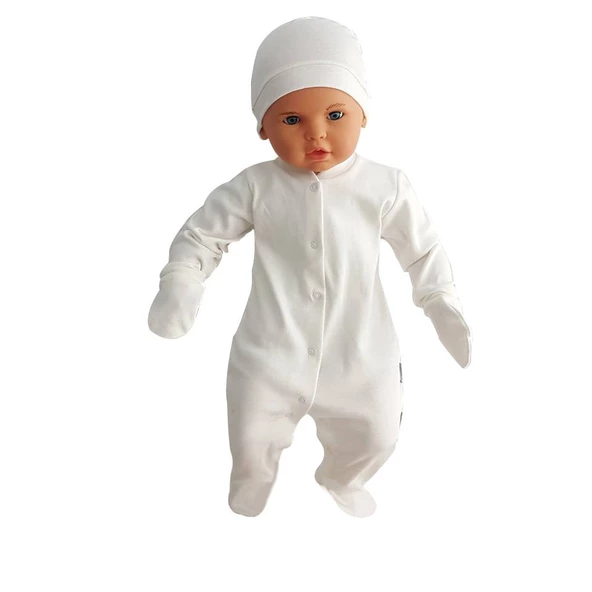 Sade Krem Bereli Eldivenli Tulum Bebek Takımı