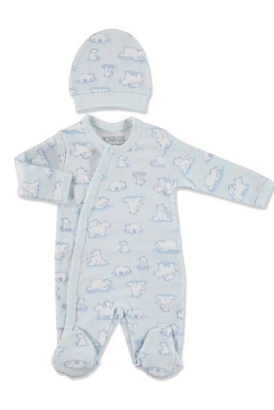 ERKEK BEBEK AYICIK ŞAPKA 2Lİ PAMUK TULUM