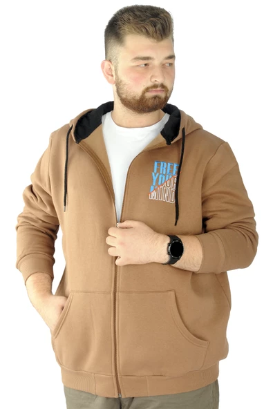 Mode XL Erkek Sweat Fermuarlı Free Your Mind 22536 Sütlükahve