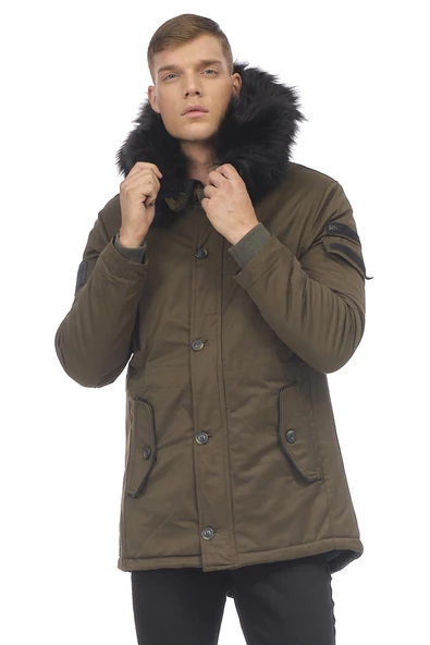 Erkek Kapüşonlu Kürklü İçi Kapitoneli Kalın Kışlık Mont