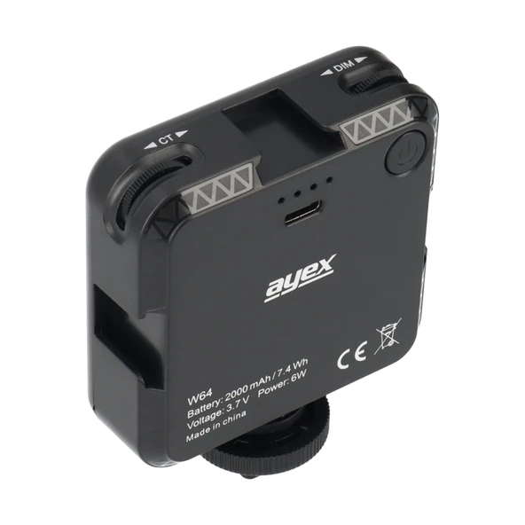 ayex W64 Bicolor LED Video Işığı Ayarlanabilir Parlaklık & Renk Sıcaklığı, USB-C, 2000mAh Batarya