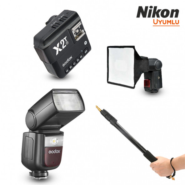 Godox V860III-N Nikon Flaş Full Set (Tepe Flaş + Tetikleyici + Portable Boom + Softbox)