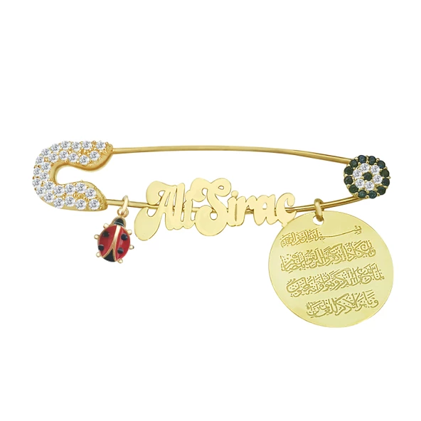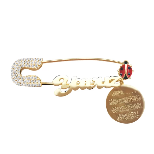 Vaoov 925 Ayar Gümüş Uğurböceği Ve Nazarlı İsimli Bebek İğnesi