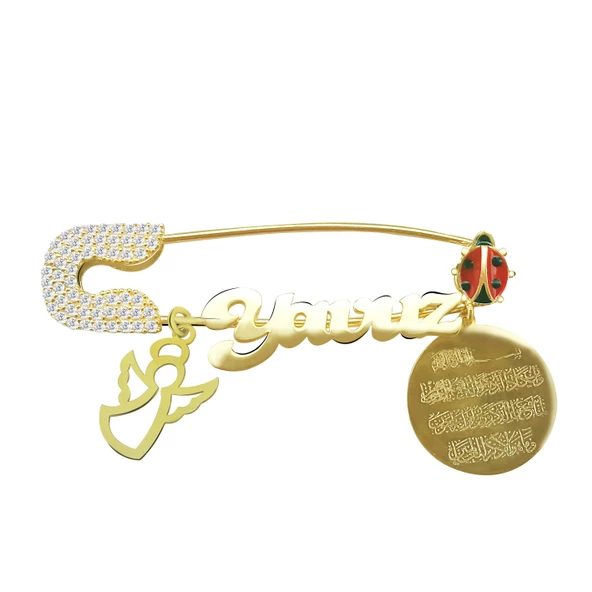 Vaoov 925 Ayar Gümüş Uğurböceği Ve Melek Figürlü İsimli Bebek İğnesi