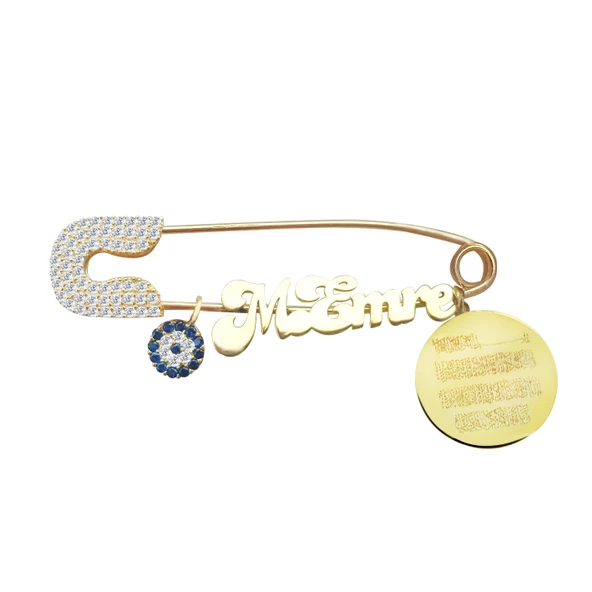 Vaoov 925 Ayar Gümüş Nazarlı İsimli Bebek İğnesi