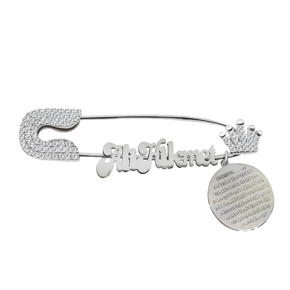 Vaoov 925 Ayar Gümüş Taçlı İsimli Bebek İğnesi
