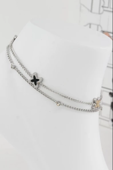 316L Çelik Gümüş Renk Minimal Kelebek Tasarımlı Halhal - TJ-HH1570